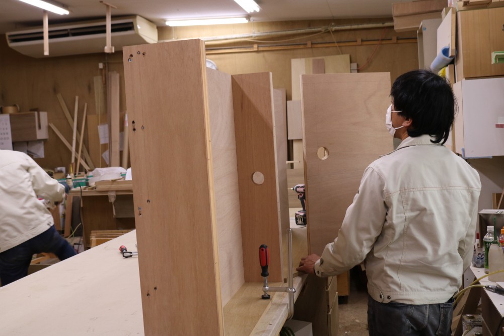 木工製作部が手掛けて完成した家具の取り付けは、施工管理職人が現地で行う一貫施工で安心の提供もお約束します。
